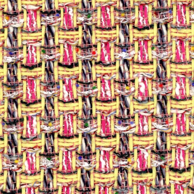 Bright Pink White And Multi Textured Fabric With Neon Pom Pom Yarn