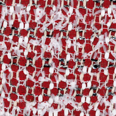 Maroon Red And White Bouclé Fabric