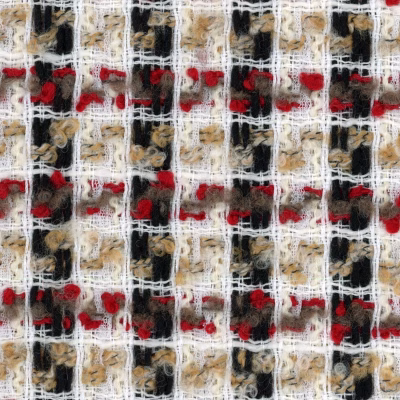 Deep Red Black And Cream Bouclé Fabric