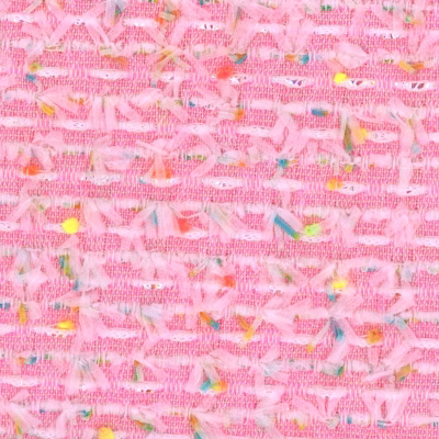 Bright Pink White And Multi Textured Fabric With Neon Pom Pom Yarn