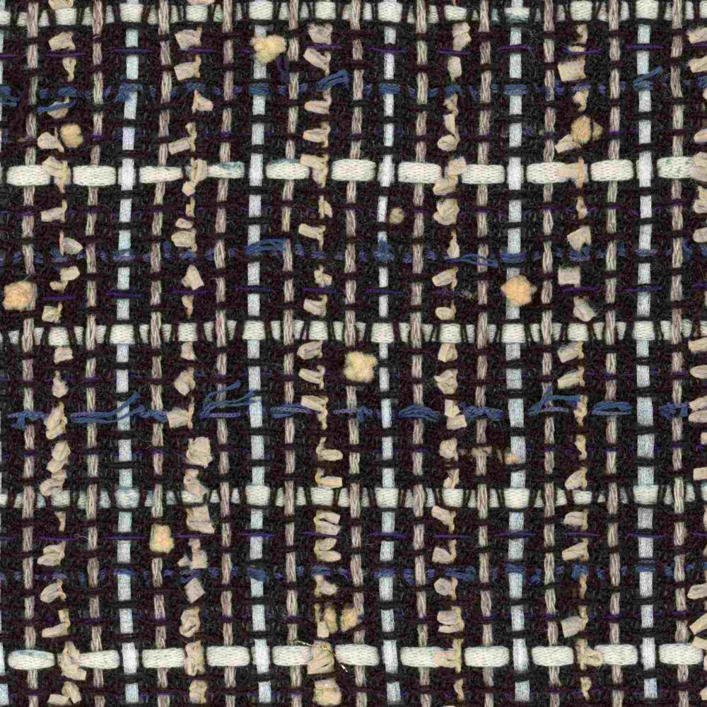 Black Denim Blue White Silver and Beige Textured Check Fabric