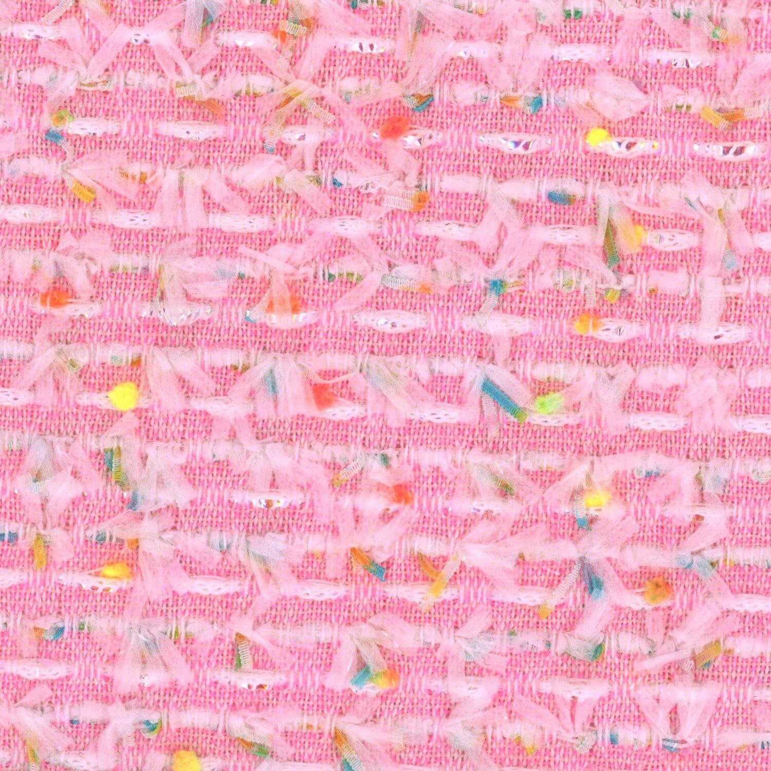 Bright Pink White and Multi Textured Fabric with Neon Pom Pom Yarn
