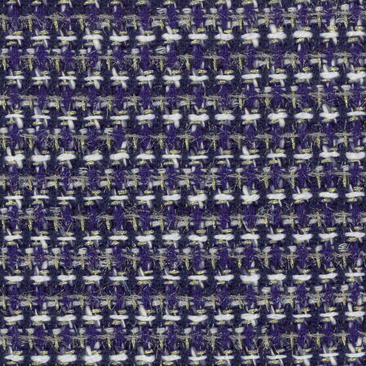 Dark Blue White and Gold Basketweave Fabric