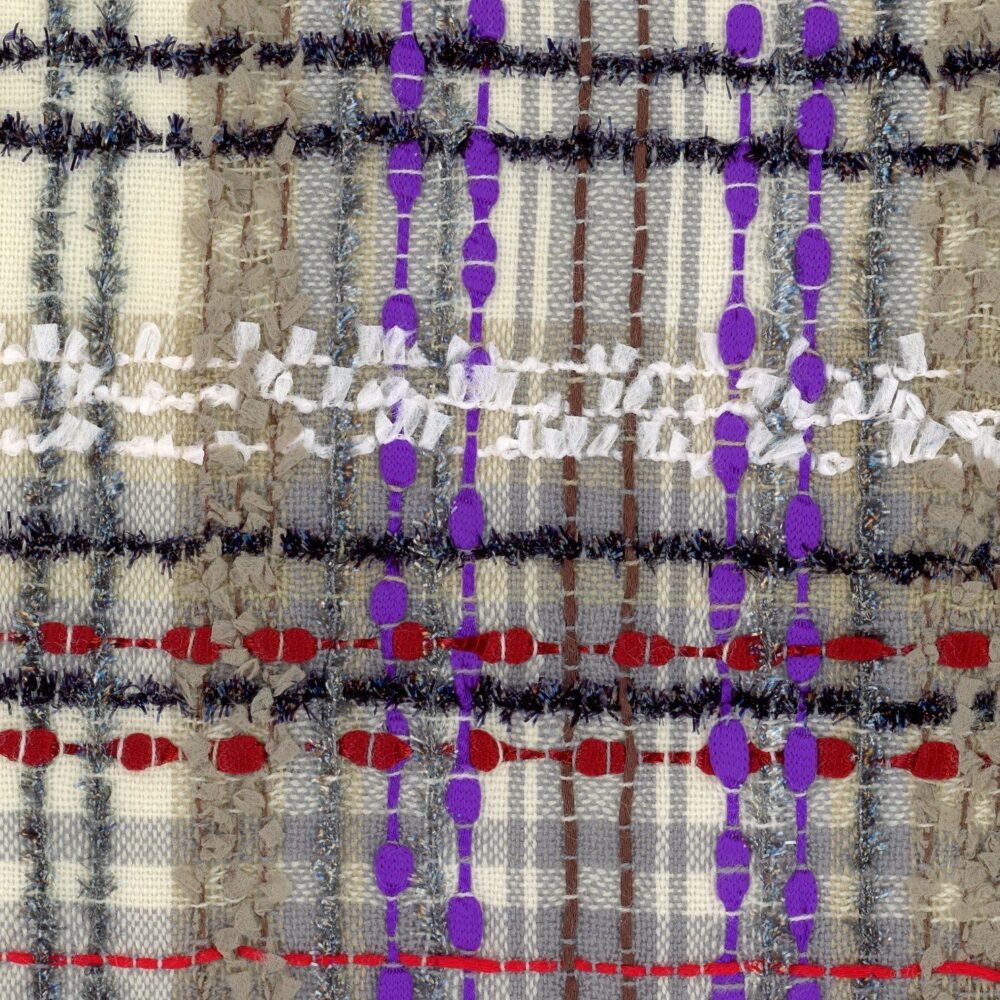 Grey Purple and Red Metallic Couture Fabric