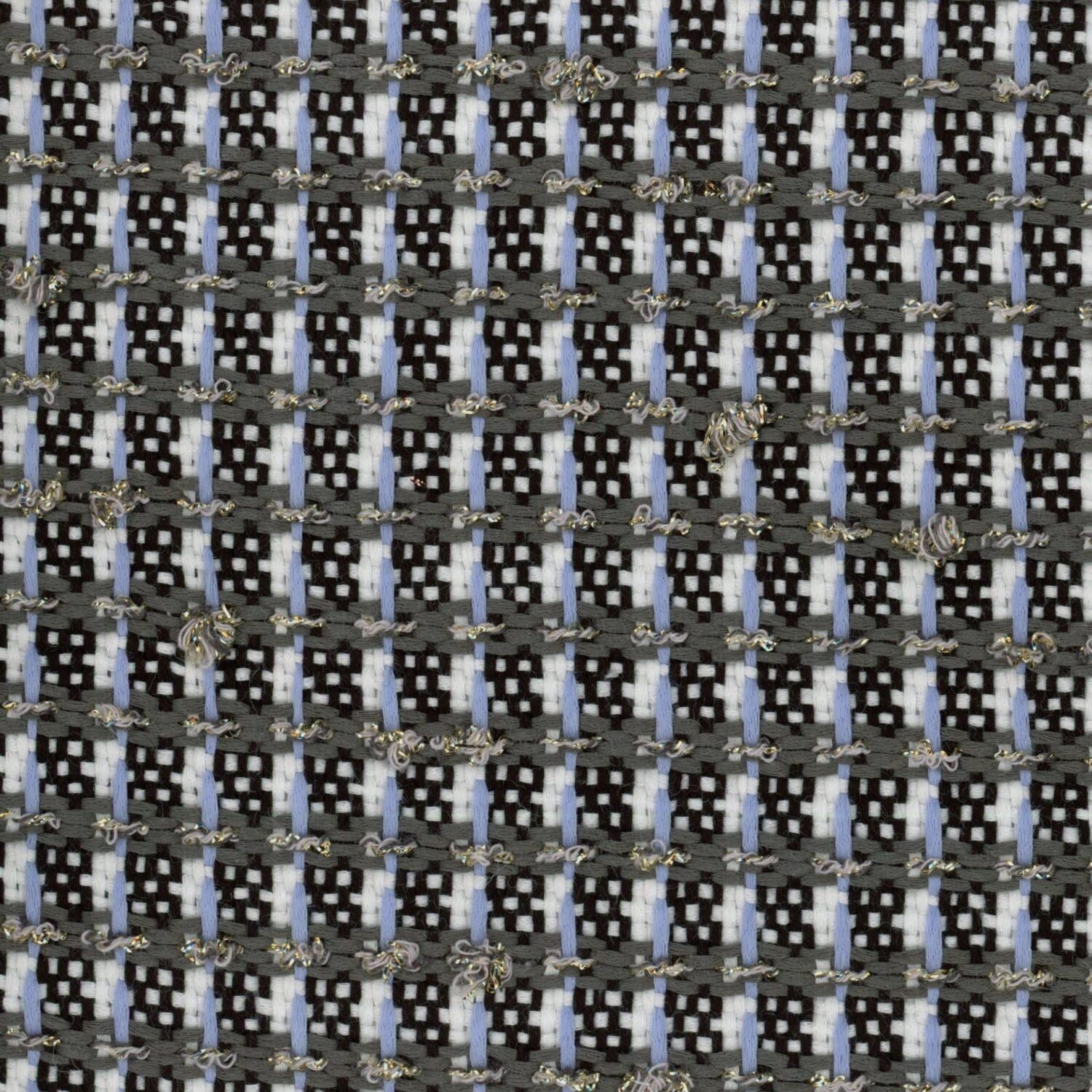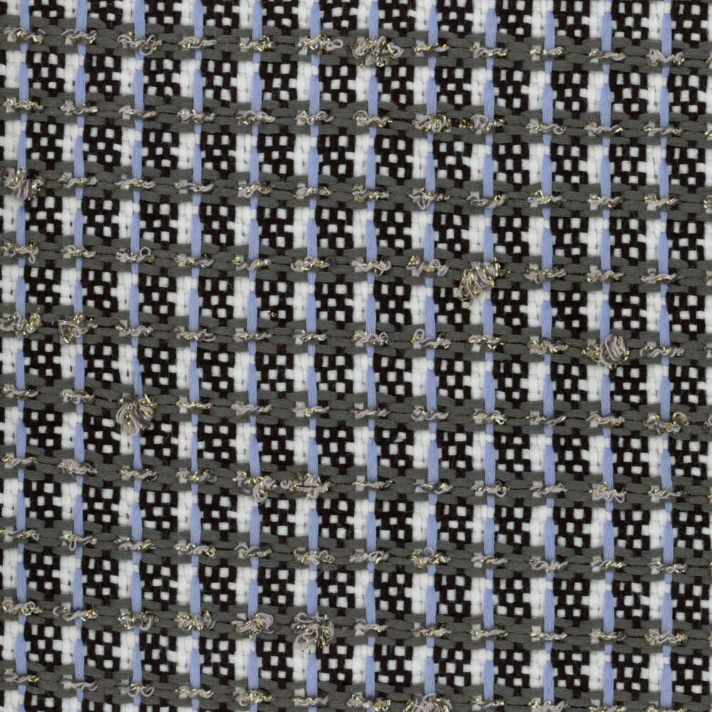 Light Blue White and Gold Bouclé Fabric