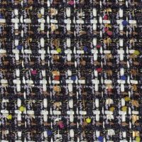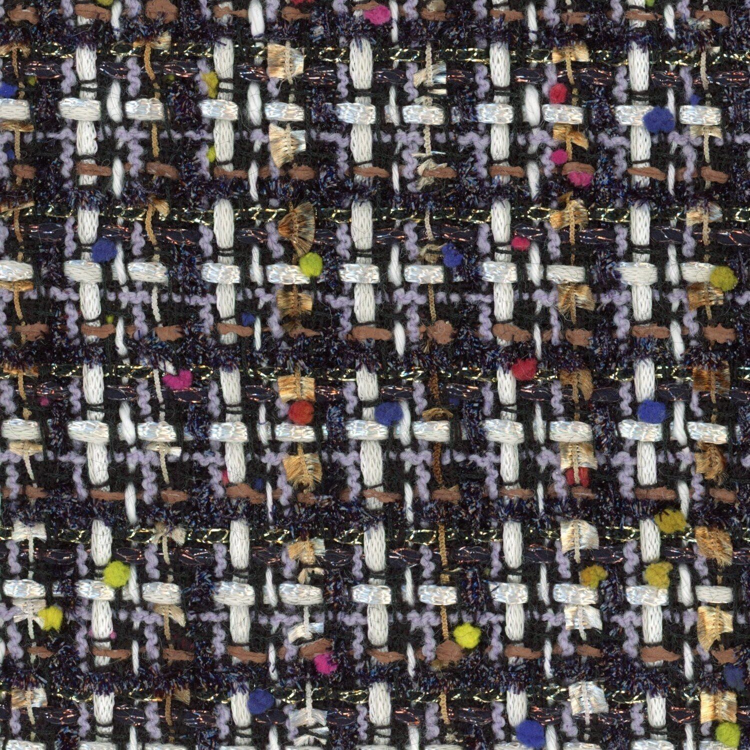 Metallic Navy White and Multi Bouclé Fabric with Pom Pom Yarn