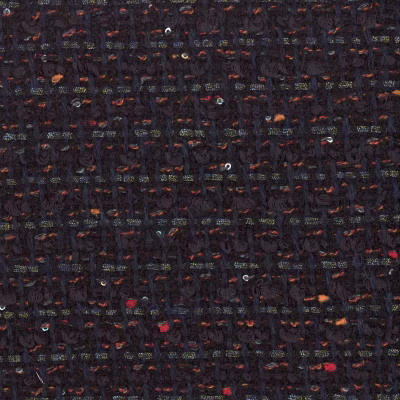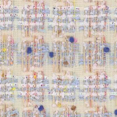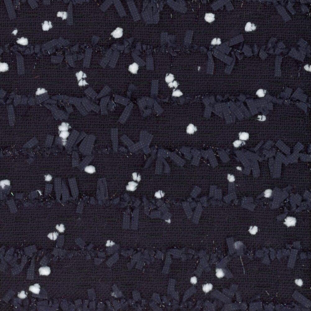 Navy and White Polka Dot Pom Pom Yarn Textured Fabric