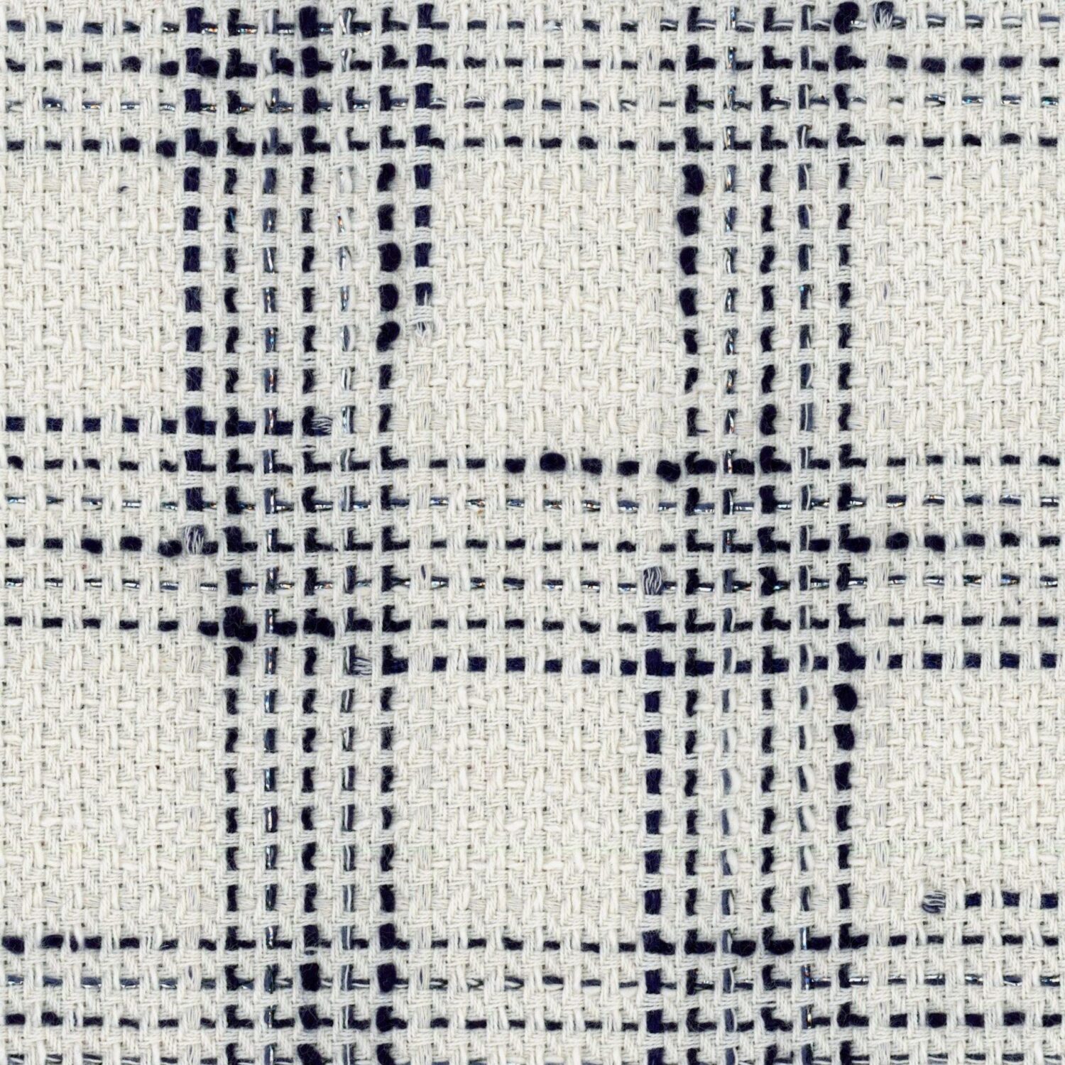 Navy Cream and Silver Check Fabric