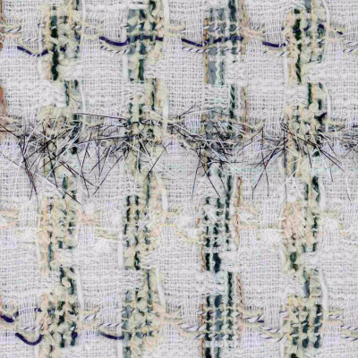 Black Denim Blue White Silver And Beige Textured Check Fabric