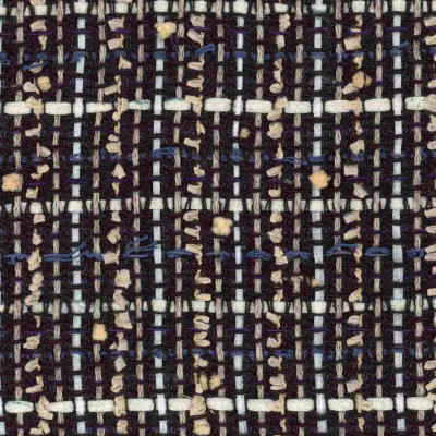Black Denim Blue White Silver And Beige Textured Check Fabric