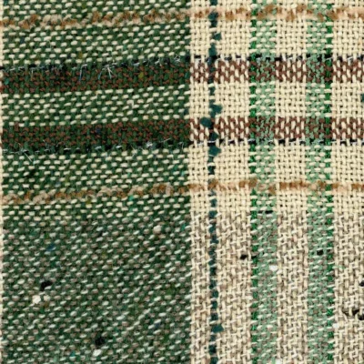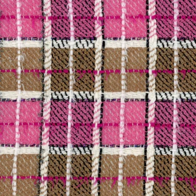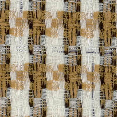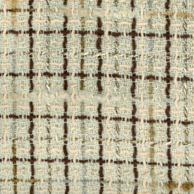 Chocolate Caramel Metallic And Ecru Check Fabric