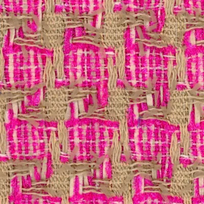 Metallic Hot Pink And Neutral Houndstooth Fabric