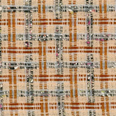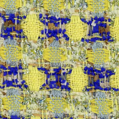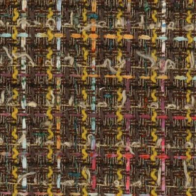 Brown Mustard Yellow And Multi Textured Tweed Fabric