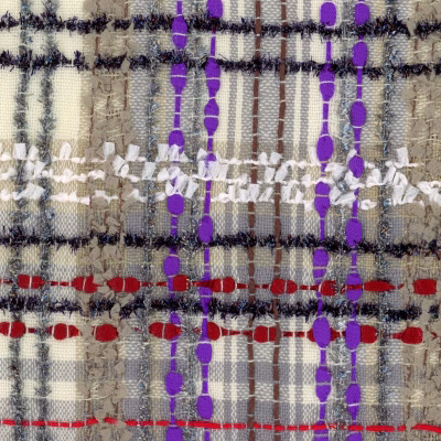 Electric Pink Black White And Metallic Silver Couture Textured Fabric