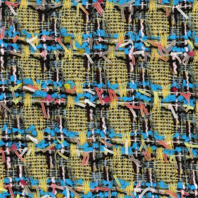 Metallic Yellow Blue And Multi Eyelash Fabric